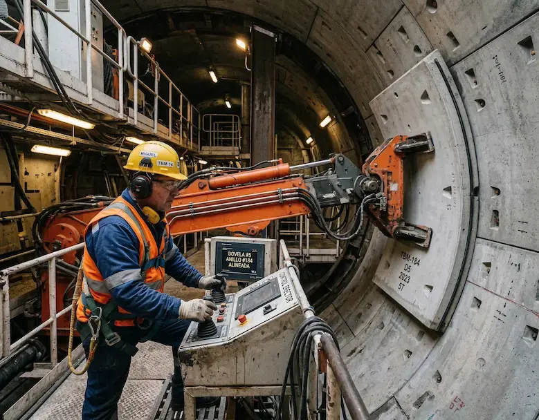 The erector operator is responsible for one of the most technically demanding tasks in tunnel construction: the precise placement of precast concrete segments to form the tunnel lining ring. Our erector operators have extensive experience working with all major erector types and TBM configurations, and are capable of maintaining high ring-building speeds without compromising structural accuracy or safety. Their work is fundamental to the quality and watertightness of the finished tunnel, making this one of the most critical roles in any TBM crew.
